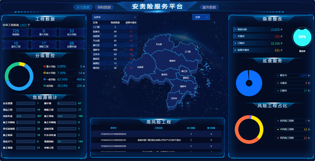 “去年以来,我们大力推广建筑施工行业安全生产责任险,在市住建局的牵头下,我们成立建工安责险联合体,将防重于赔的理念贯彻到实处。”人保财险台州市分公司机构业务部王煜介绍道,这是该公司在推动建筑工程领域安全保障领域的创新突破。目前,建工安责险在保项目1013个,累计提供风险保障超58.74亿元,联合服务机构共开展服务5755次,发现风险隐患21004项,风险整改率达到98.50%,大大降低了建筑工程领域的安全风险。