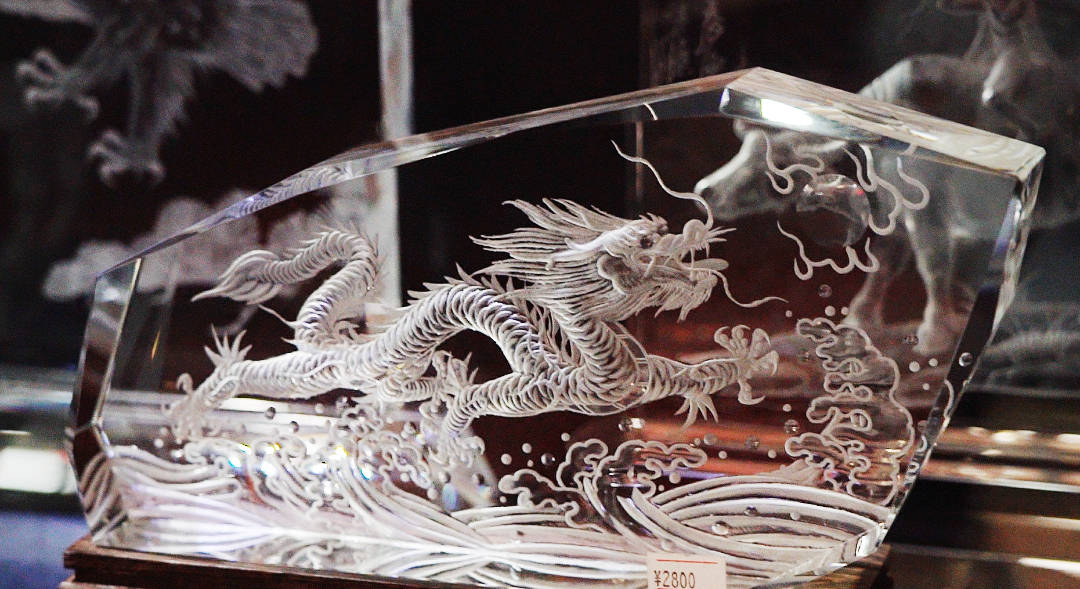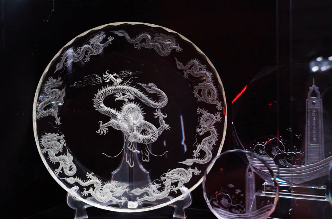 吴子熊玻雕艺术馆每年都要创作很多与生肖有关的作品。今年,台州玻雕技艺传承人吴刚也创作了诸多以龙为主题的作品,包含了祥龙飞舞、双龙抢珠、龙凤呈祥等。