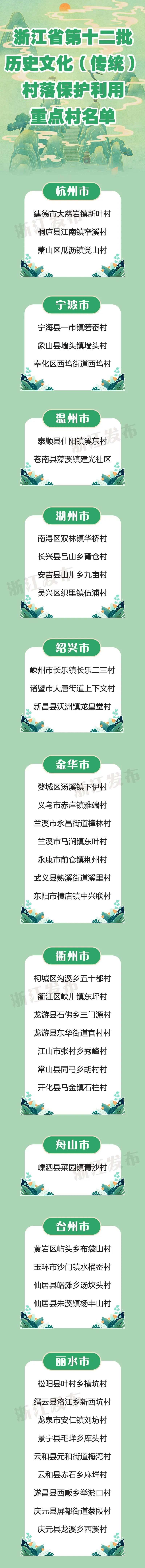 近日,省农业农村厅、省“千村示范、万村整治”工作协调小组办公室、省财政厅公布了第十二批(2024年度)历史文化(传统)村落保护利用重点村名单,共43个村落上榜。其中,台州有4个村落入选,快看看有你的家乡吗?