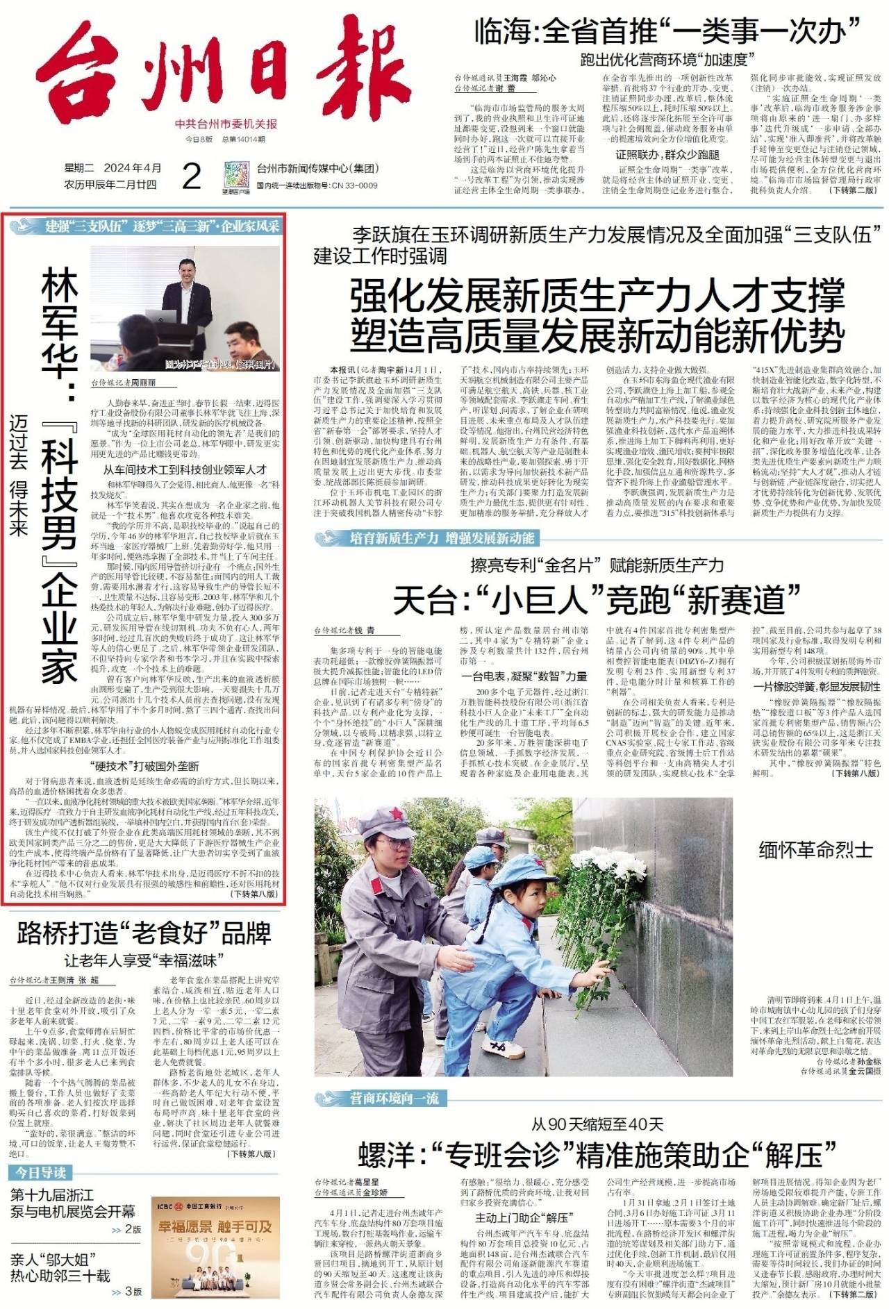 “我的学历并不高,是职技校毕业的。”说起自己的学历,今年46岁的林军华坦言,自己技校毕业后就在玉环当地一家医疗器械厂上班。凭着勤劳好学,只用一年多的时间,便熟练掌握了全部技术,并当上了车间主任。