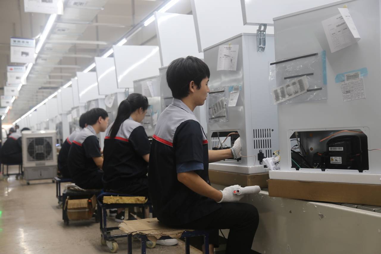 连日来,在浙江星星冷链集成股份有限公司台州生产基地,平均每天生产8000—9000台冰箱、冷柜,工人们忙得热火朝天。