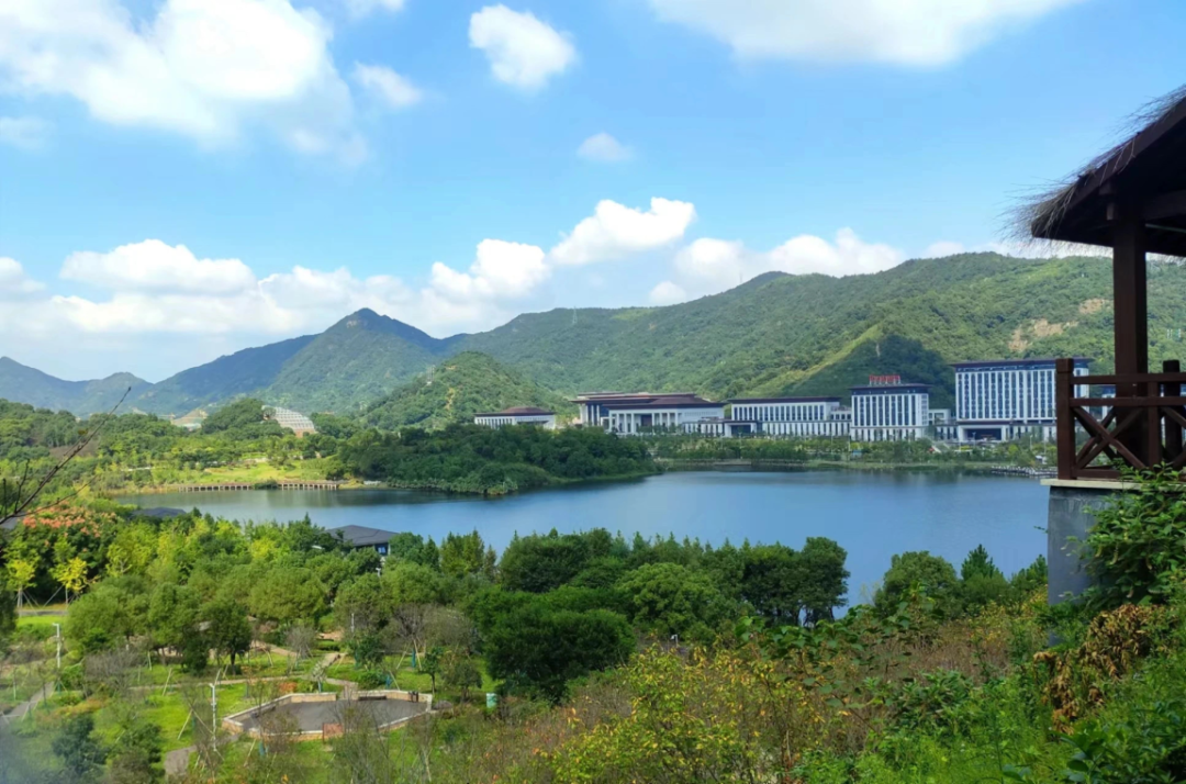植物园内也有许多功能区,散布在井马水库和狮子山之间。比如青少年研学基地,它是集科普教育、实践探索、文化交流和艺术创作等多功能为一体的教育基地。再比如休闲茶楼,它依附在水库边上,可供游客休憩。