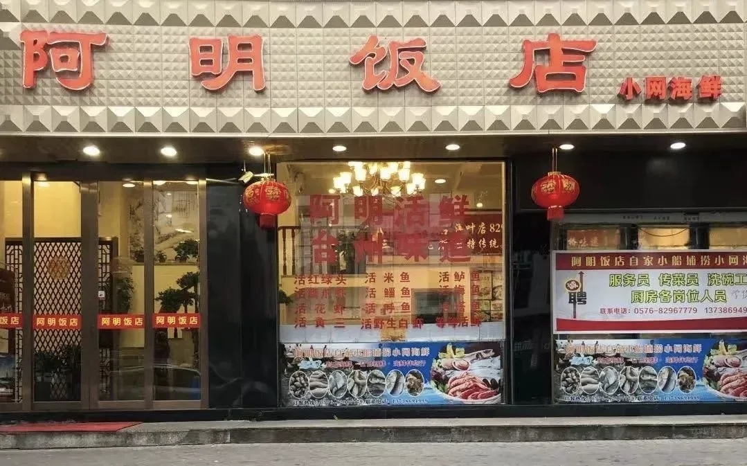 阿明饭店是省级“百县千碗”美食体验店。招牌特色菜“家烧黄眼鲻鱼”在2017年被中国饭店协会授予中国名菜;2023年列入路桥区区级非物质文化遗产;2024年荣获非遗美食挑战赛全省十佳。
