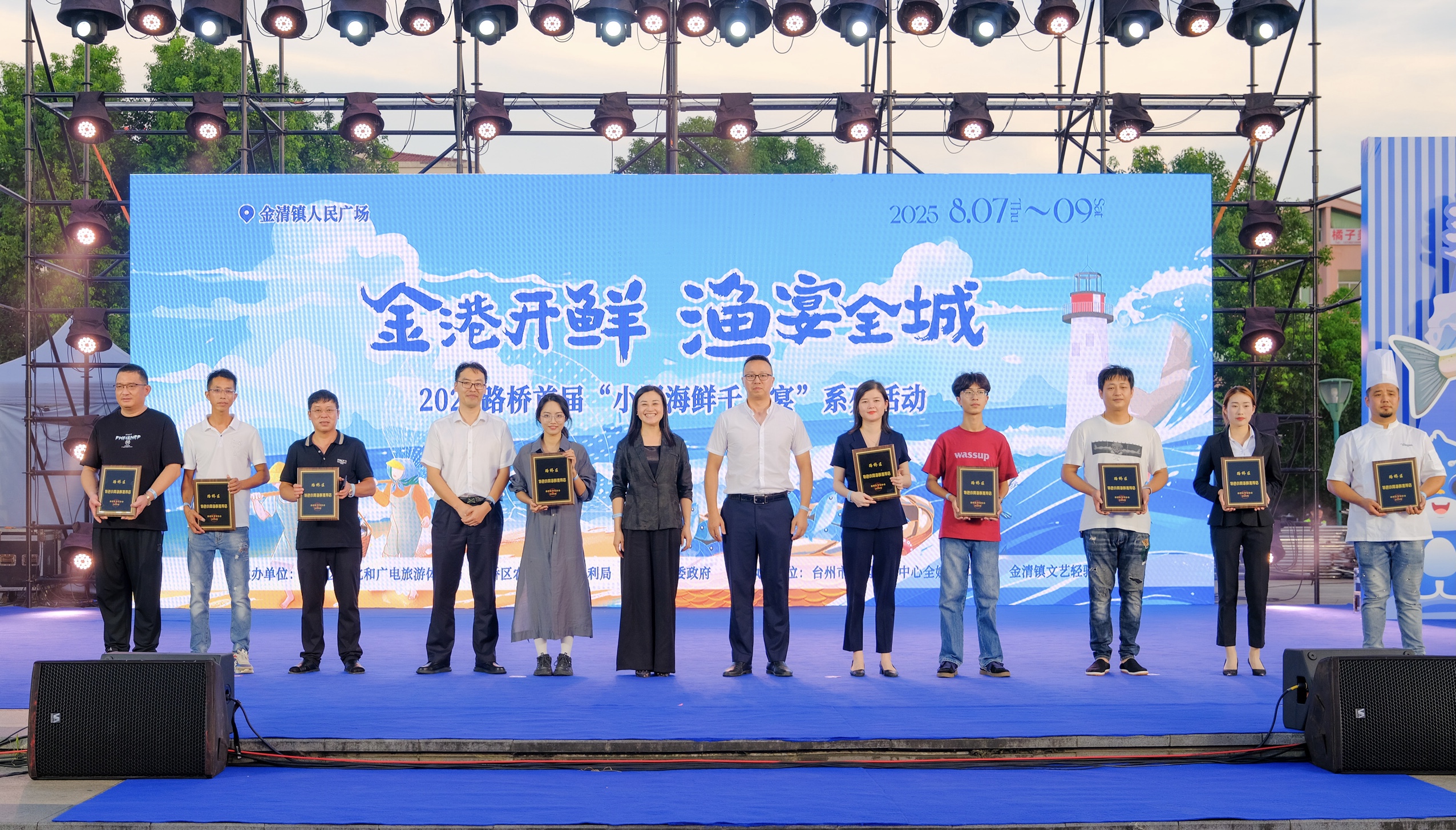 ▲8家路桥“小网海鲜推荐官”上台领取荣誉证书