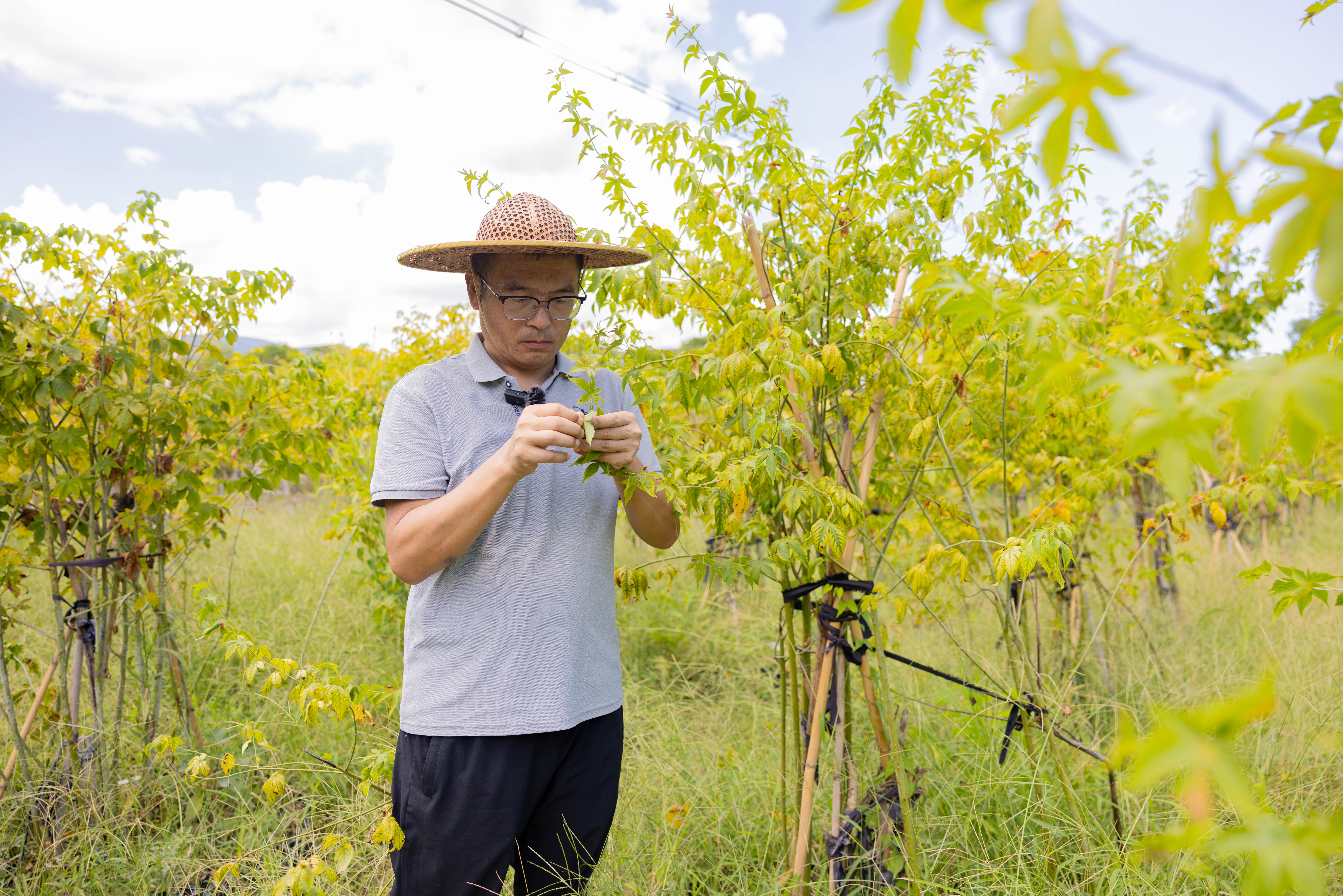 9月8日,台州市农科院园艺研究所农艺师江景勇和台州学院副教授陈珍来到掌叶覆盆子种质资源圃,逐一观察130多种掌叶覆盆子的日常生长,记录不同种质对高温的反应。