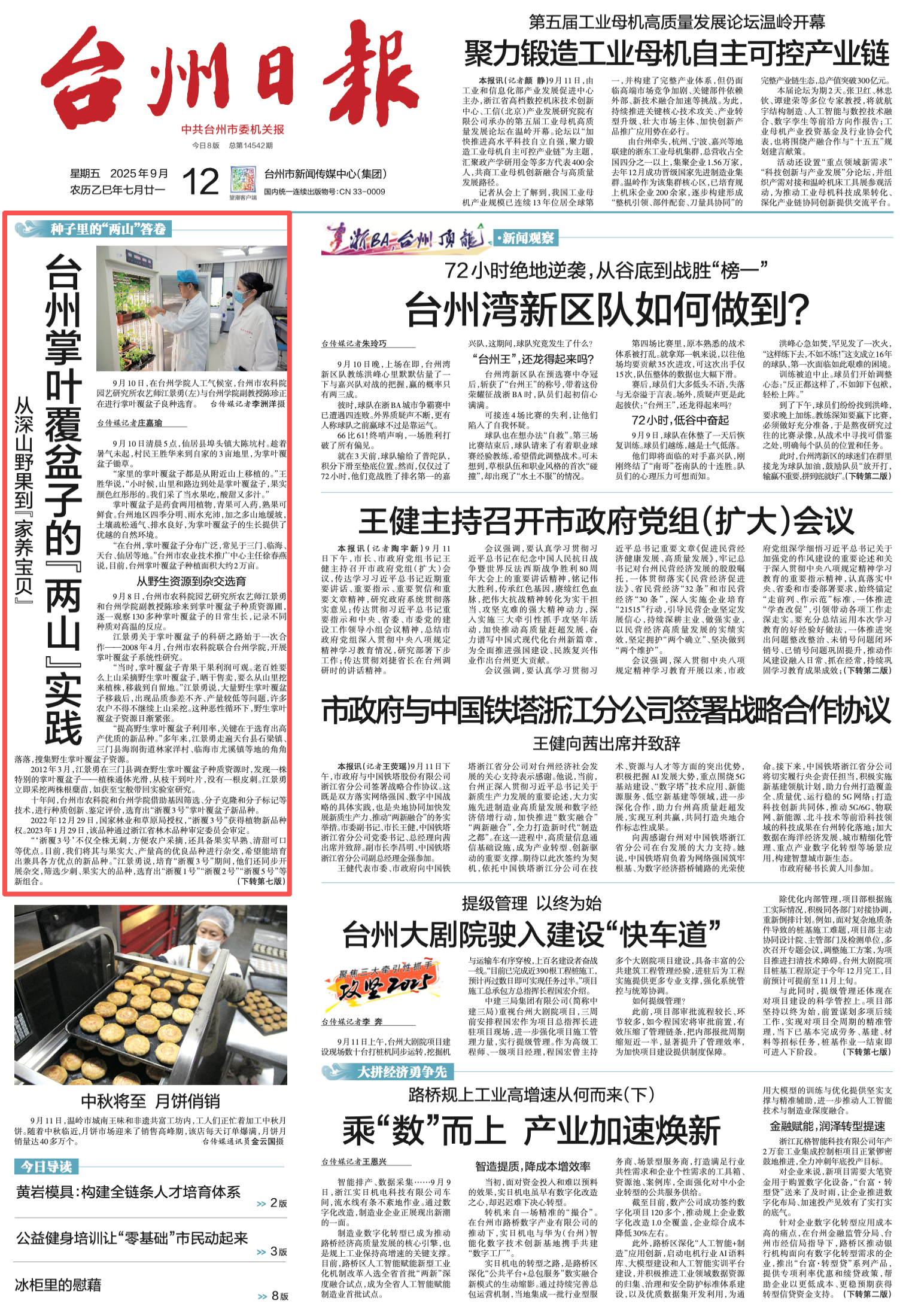 十年间,台州市农科院和台州学院借助基因筛选、分子克隆和分子标记等技术,进行种质创新、鉴定评价,选育出“浙覆3号”掌叶覆盆子新品种。