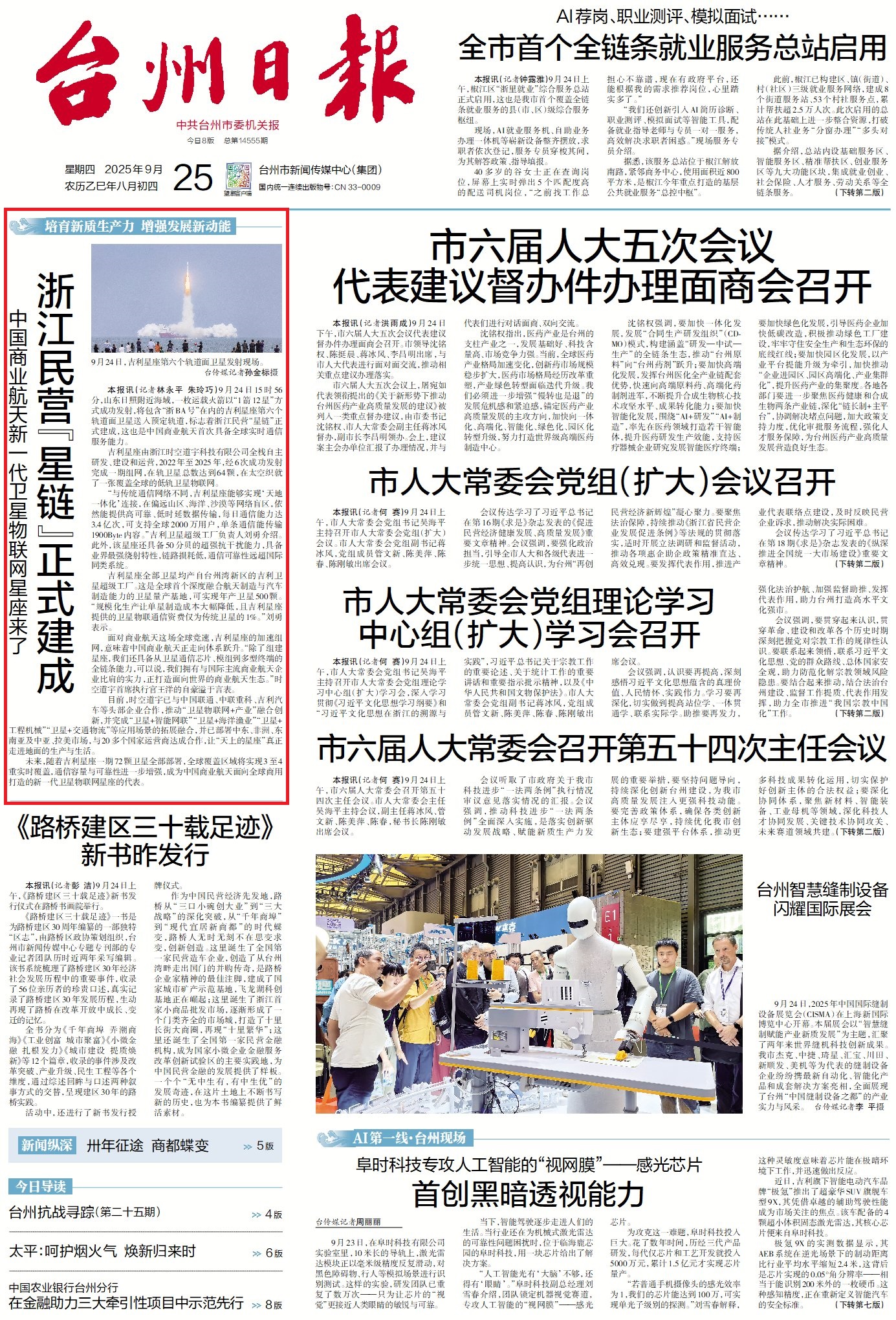 未来,随着星座一期72颗卫星全部部署,全球覆盖区域将实现3至4重实时覆盖,通信容量与可靠性进一步提升。“台州湾新区也将持续壮大商业航天产业,依托卫星超级工厂与产业链优势,发展商业航天产业园项目,推动 ‘卫星+’与智能网联、应急通信、农林畜牧等领域深度融合,让 ‘台州造’星链更好赋能全球产业升级,为‘数字浙江’‘制造强省’战略注入新动能。”台州湾新区低空经济建设发展中心负责人蔡挺说。