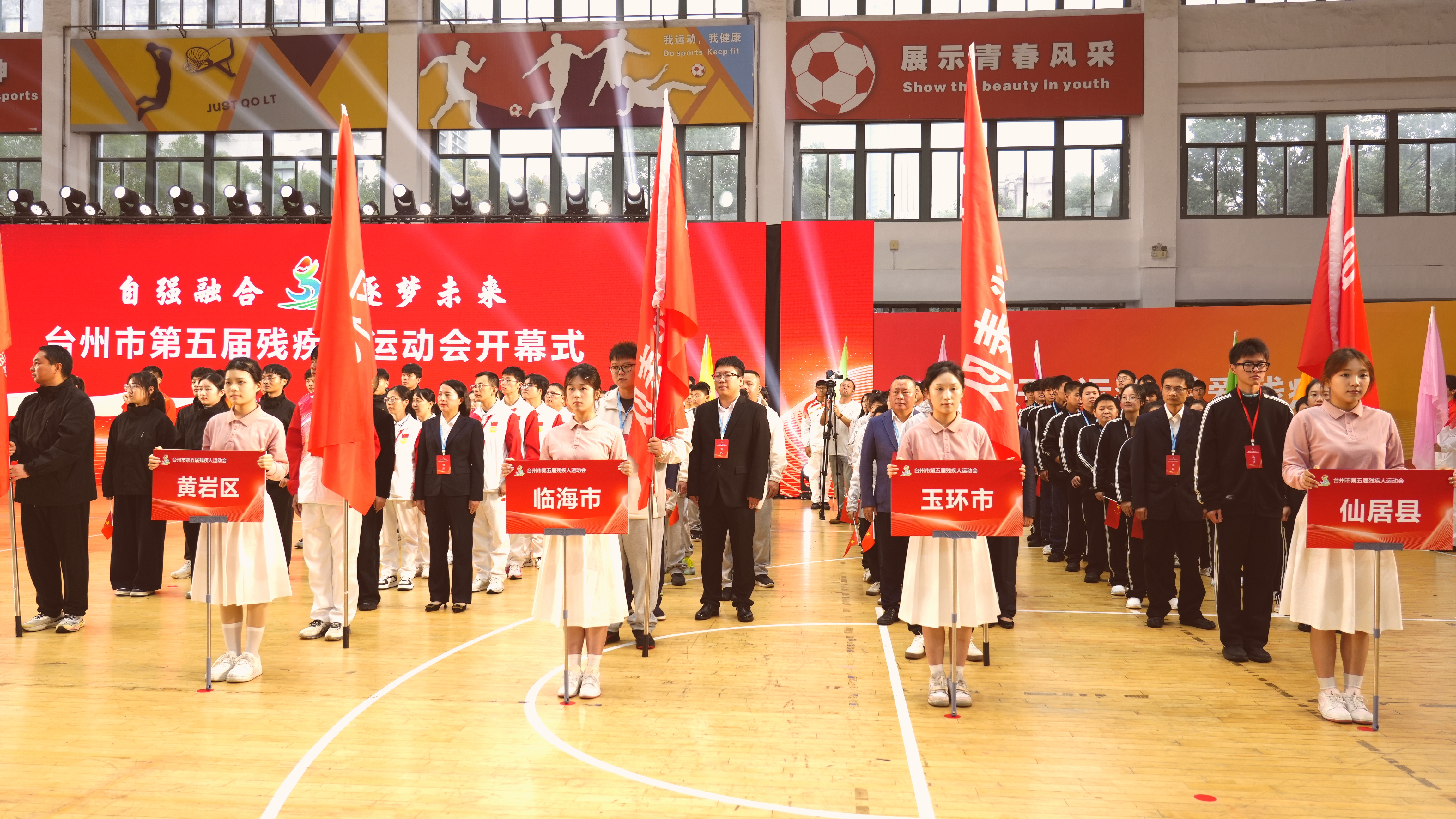 11月12日,台州职业技术学院体育馆内彩旗飘扬、暖意融融,台州市第五届残疾人运动会开幕式隆重举行。市委副书记苗伟伦出席开幕式并宣布开幕。省残疾人联合会党组成员、副理事长李一波,陈春、杨玲玲、周凌翔等市领导出席开幕式。