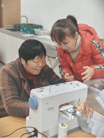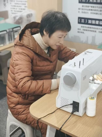 作为台州缝纫产业的标杆力量,飞跃集团慷慨助力,为工作坊配齐专业缝纫设备,用产业实力为银龄学习保驾护航;学校则发挥老年教育优势,组建资深教师团队,让专业教学从集市延伸到校园,精准覆盖不同需求的学员。从集市的即兴体验到校园的系统教学,双方联手打造的“设备+教学+创造+转化”全链条服务,既盘活了优质资源,更让老年群体与地方产业实现“双向奔赴”。