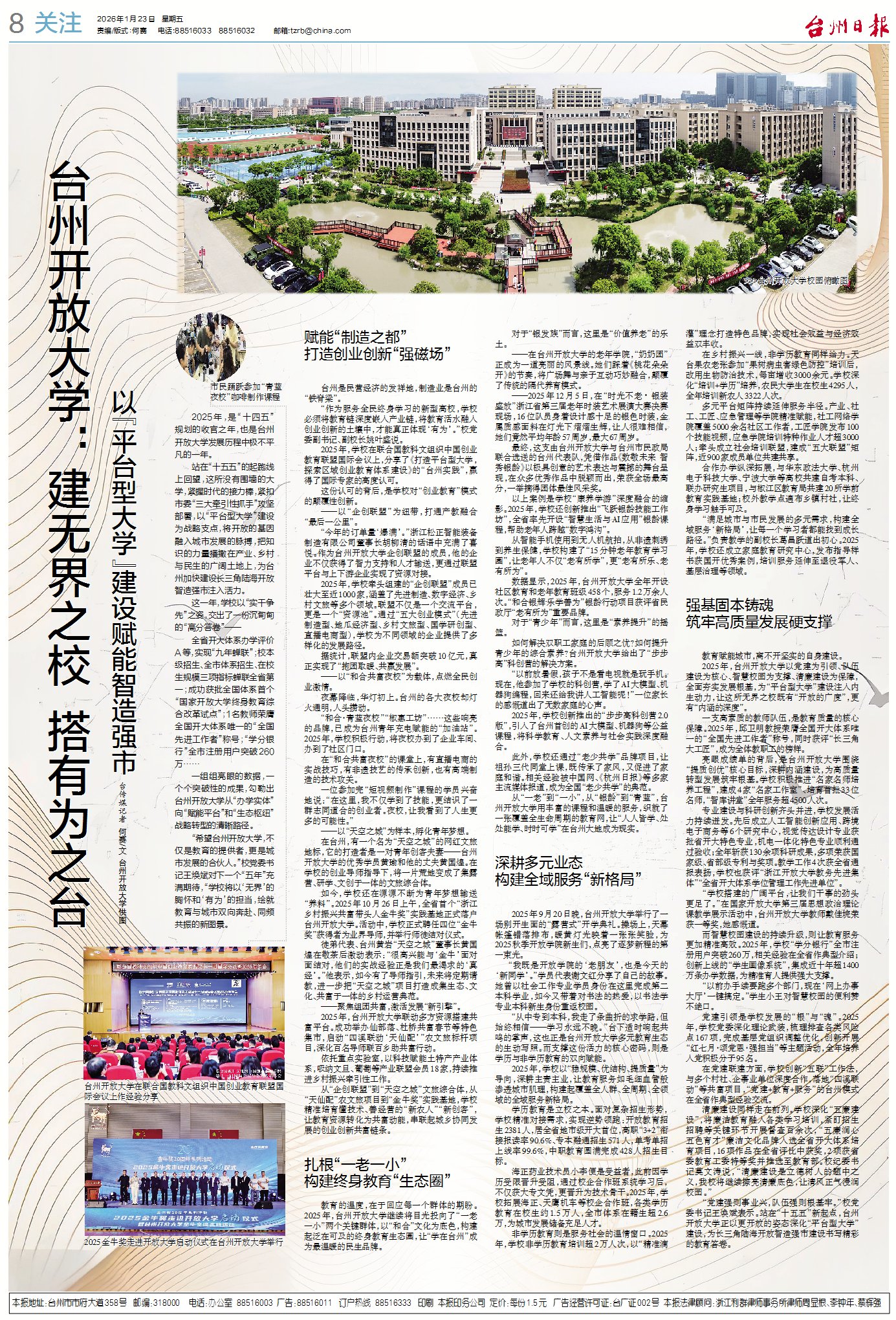 一组组亮眼的数据,一个个突破性的成果,勾勒出台州开放大学从“办学实体”向“赋能平台”和“生态枢纽”战略转型的清晰路径。