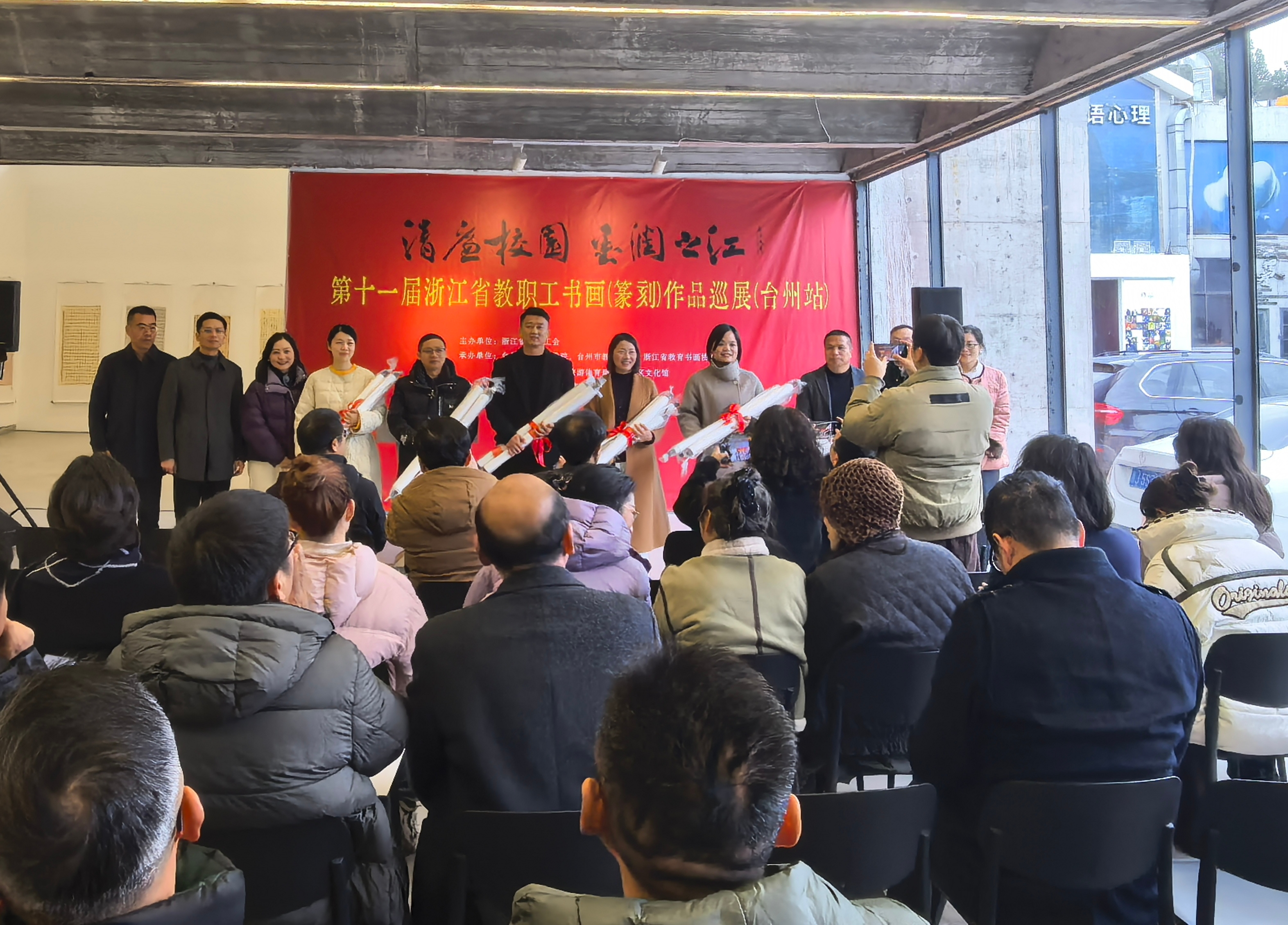 本次巡展由省教育工会主办,台州职业技术学院、台州市教育工会联合承办。其中,台州职业技术学院工会积极对接、周密筹备,全力保障首站展览顺利落地。展览将持续开放至2月6日,面向师生及市民免费开放,为公众呈现一场兼具教育意义与审美价值的文化盛宴。